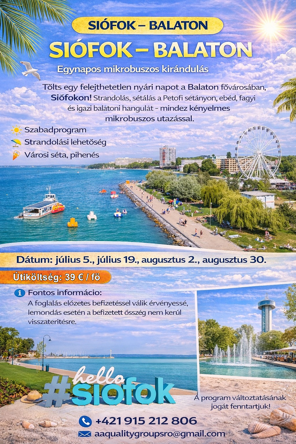 Siófok - Balaton 2026. július és augusztus