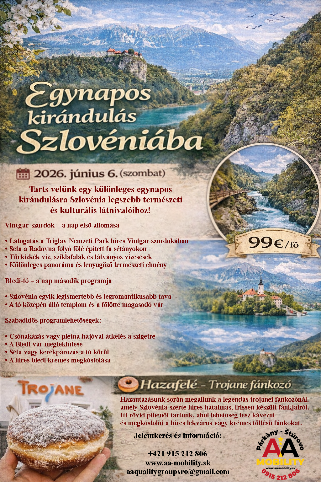 Szlovéniába – Vintgar-szurdok, Bledi-tó és Trojane fánkélmény 2026. június 6. (szombat)